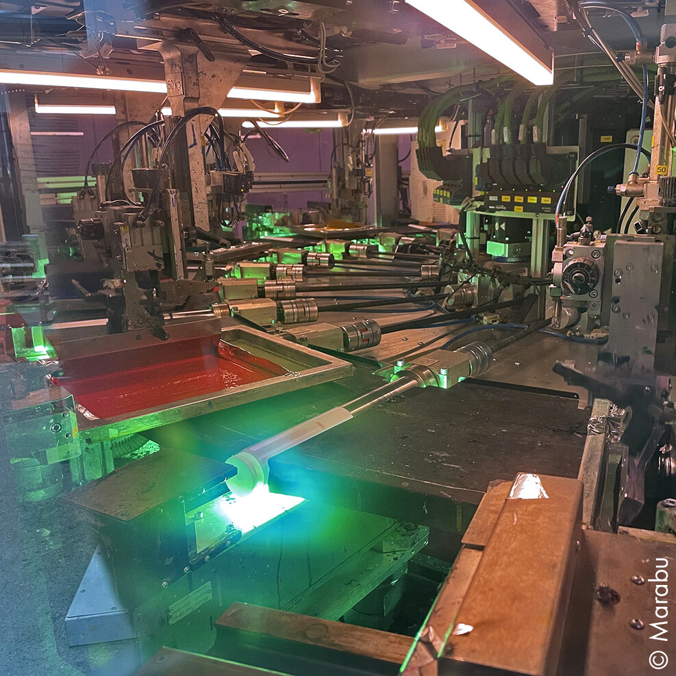 Photos: Printing plastic tubes: LEDT can be seamlessly integrated into fast production processes.